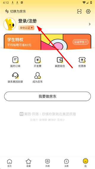 1、打开美团民宿App,点击底部导航栏中的我选项。