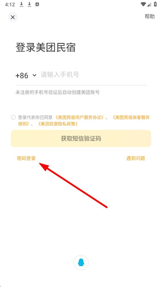 3、在登录界面,找到密码登录选项并点击,切换至密码登录的输入页面。
