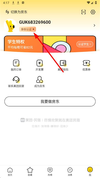 1、打开美团民宿App,点击底部导航栏中的我选项。