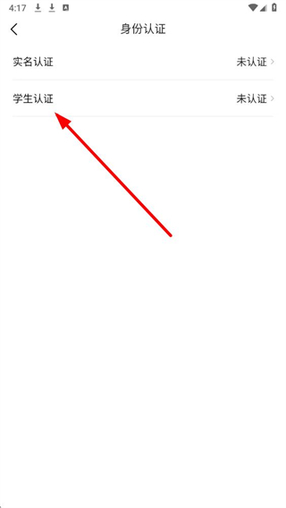 3、在身份认证页面中,找到学生认证选项,点击该选项即可进入学生身份的认证流程。