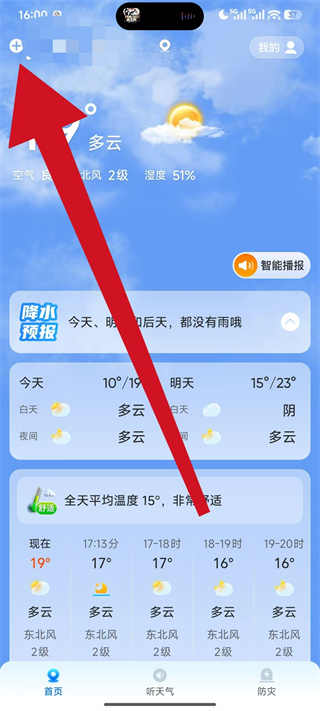1、打开新途天气,进入后会弹出弹窗,点击弹窗中的同意,进入应用主页面。