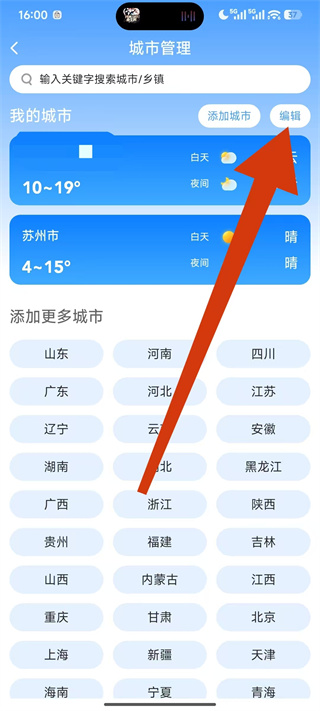 3、在城市管理页面的右上角,点击编辑,进入城市的编辑状态。