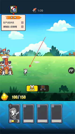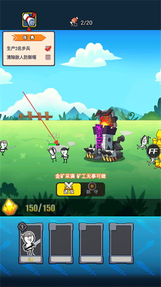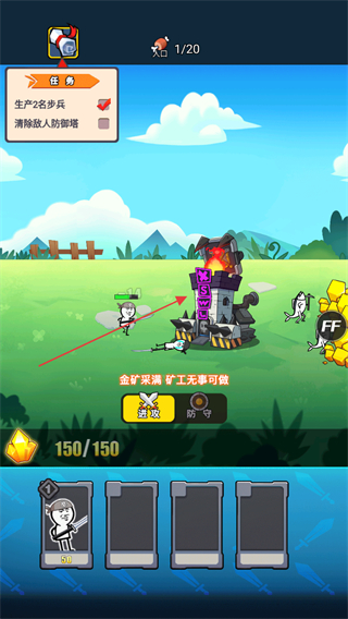 3、操控沙步兵攻击敌方防御塔,消耗其血量,推进清除敌人防御塔任务。