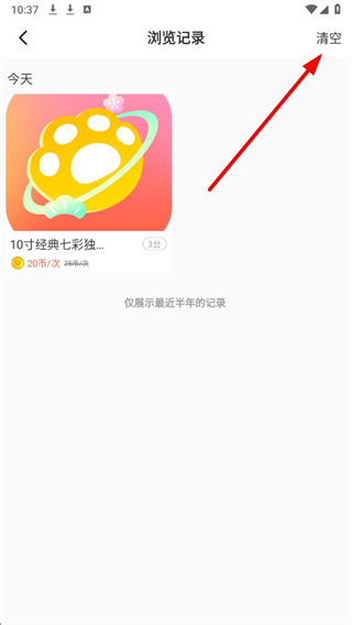 3、在浏览记录页面,找到右上角的清空按钮并点击,弹出确认弹窗。