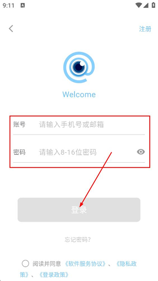 4、在账号密码登录页面,填写手机、密码,点击登录,完成账号登录。