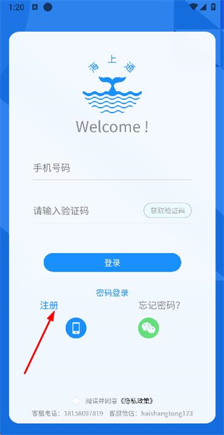 3、在注册账号页面填写验证码和密码,勾选协议后点击注册完成注册操作。