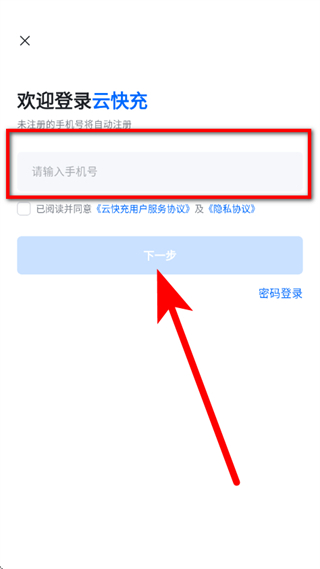 3、在登录页面,输入手机号,勾选相关协议后,点击下一步。