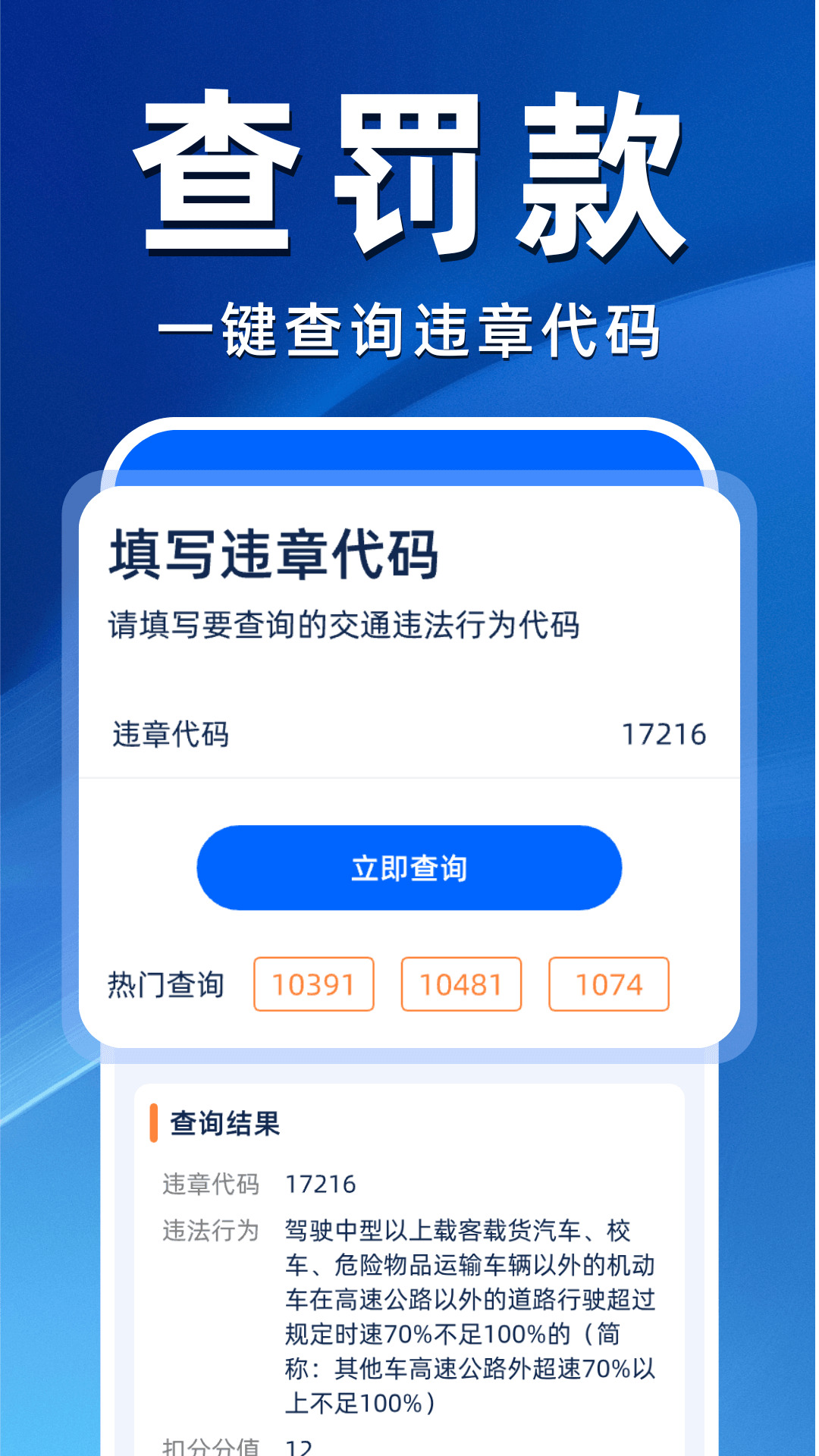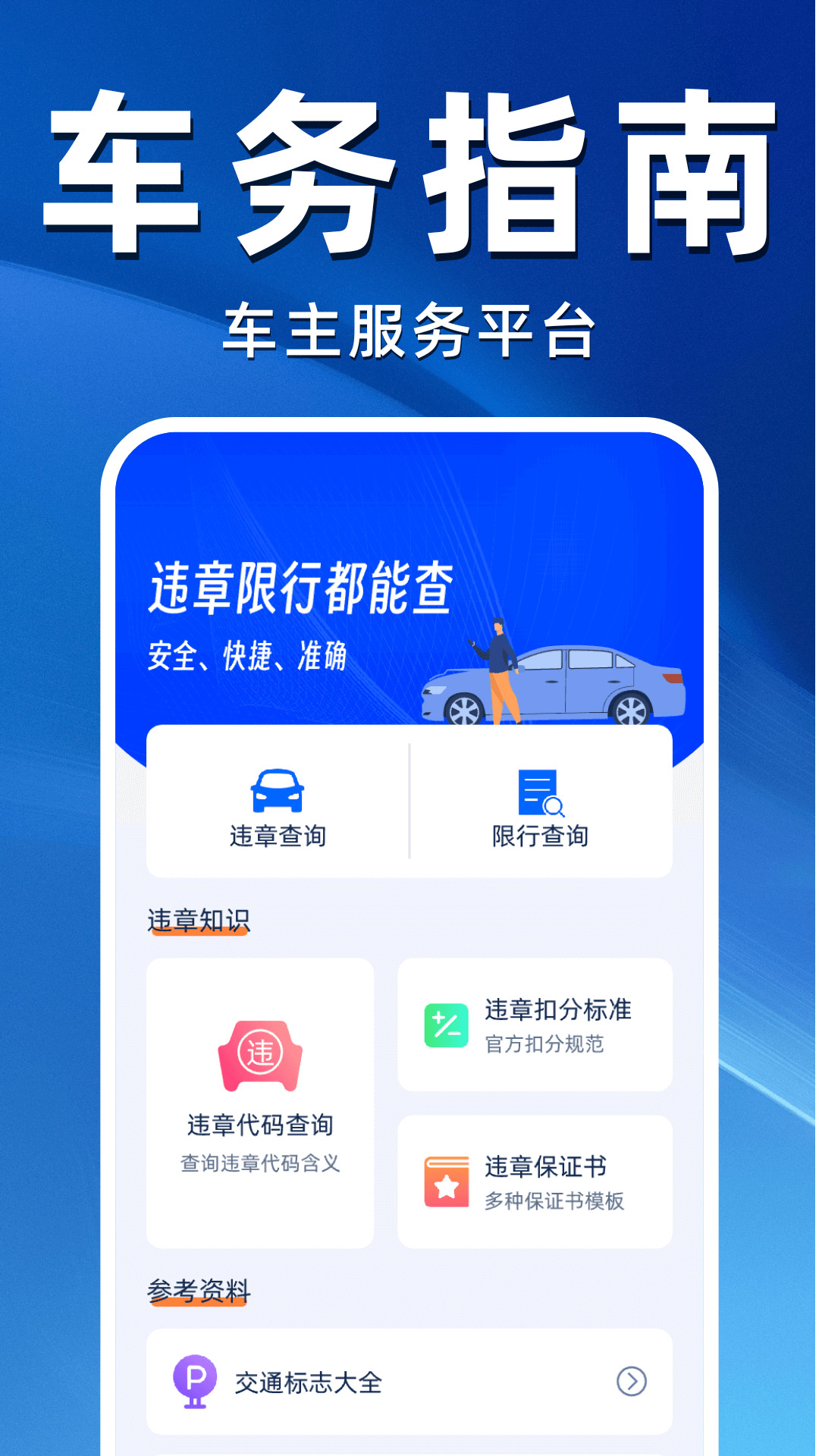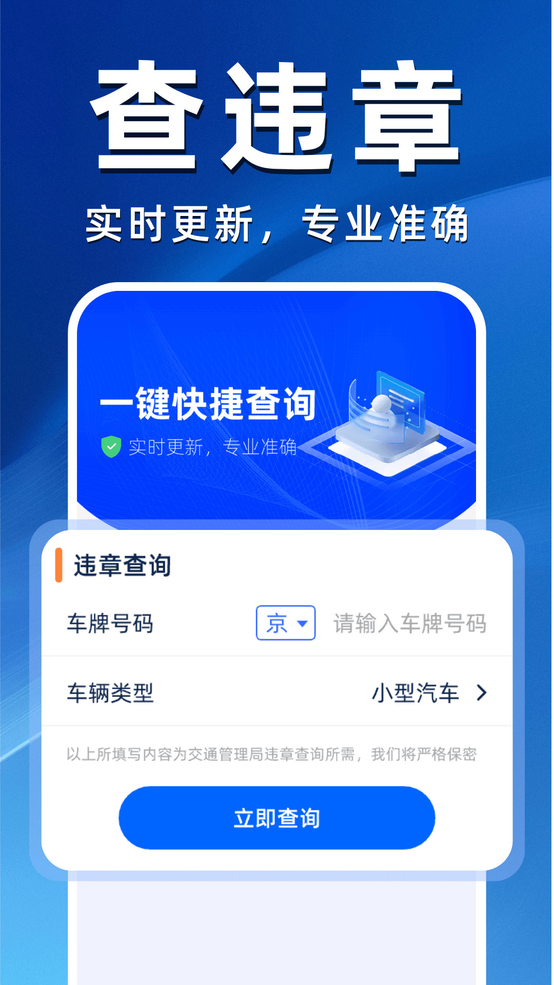 驾驶违章查询宝软件专为车主朋友们提供的全国违章查询的软件,该工具能够轻松的查询最新的违章信息内容,并及时的对于自己的违章进行处理,提供全新的干净整洁的界面使用,方便用户们轻松的找寻违章的信息等服务功能,该应用中的查询系统连接交警局的数据库,给予用户们更加准确的结果查询,同时还能实时的提醒用户们的车辆违章查询服务,查询结果速度非常快满足用户们的查询速度。
