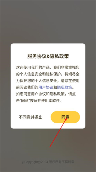 1、在服务协议&隐私政策的弹窗中,点击同意,进入应用首页。