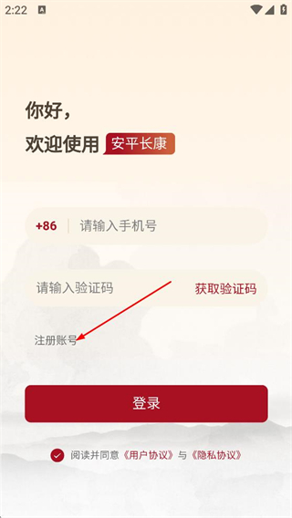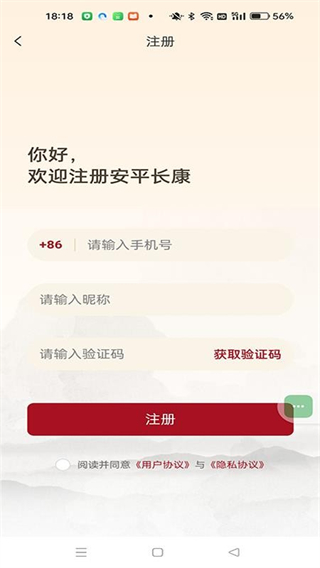 1、在服务协议和隐私政策弹窗中,点击同意,进入安平长康的登录页面。