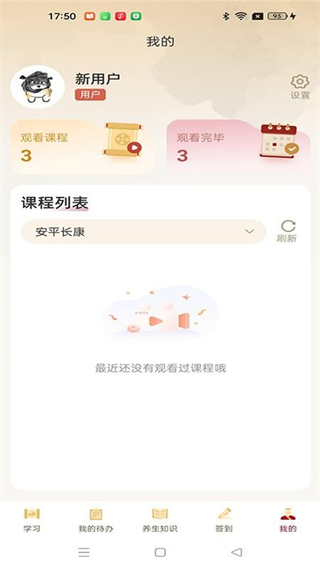 安平长康是专注中医养生学习的专业平台,整合海量中医养生视频课程,支持自主制定养生待办事项并实时推送提醒,助力用户系统积累专业养生知识、扎实巩固学习成效,轻松培养健康养生好习惯,为日常身体调理提供科学实用的知识支撑与行为指引,让中医养生融入生活、助力健康。