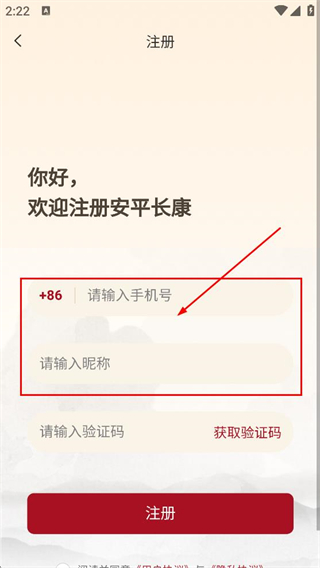 3、在注册界面,填写请输入手机号和请输入昵称对应的注册信息。