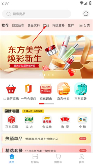 1、在山能智慧生活首页点击饮品分类选项,进入饮品商品列表页面。