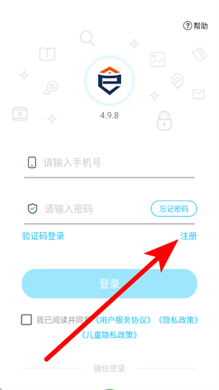1、在e家安的登录页面,点击注册选项,进入注册页面。