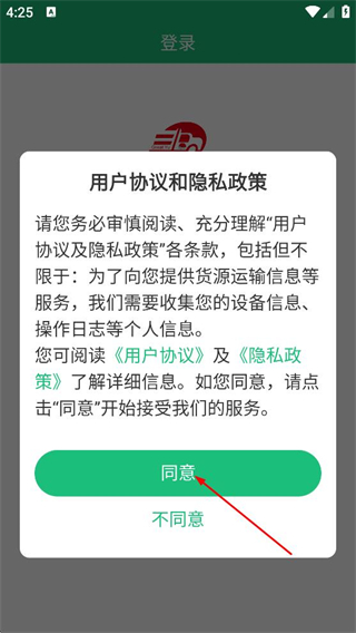 1、在用户协议和隐私政策弹窗中,点击同意,进入潮大运的登录页面。
