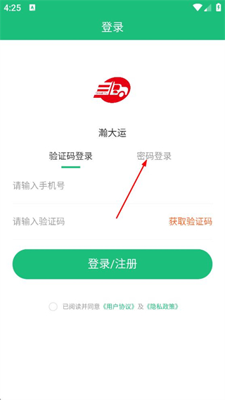 2、在潮大运登录页面,点击密码登录选项,切换至密码登录的操作界面。