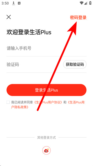 3、在登录页面的右上角,点击密码登录,切换至账号密码登录界面。