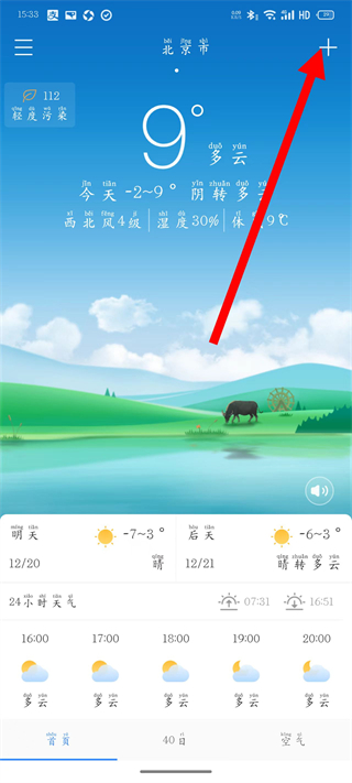 1、在早知天气,点击右上角的加号,进入添加城市页面。