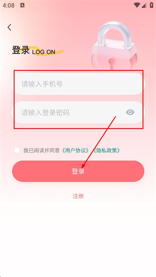 4、在登录界面,填写手机号和登录密码,点击登录,完成账号的登录操作。
