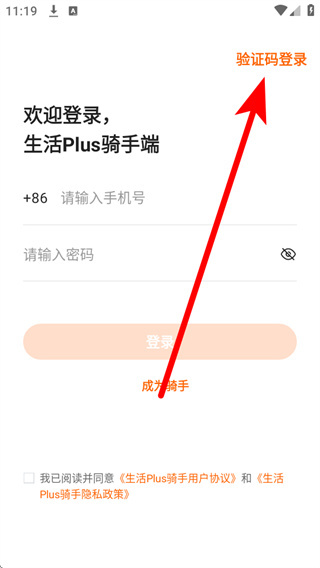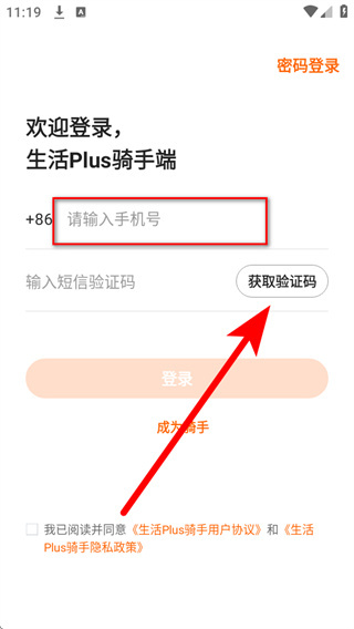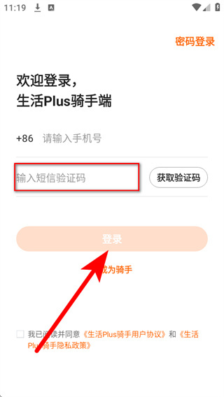 4、将收到的短信验证码填入验证码框,同时勾选相关协议后,点击登录,即可完成短信账号登录。
