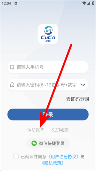 2、在登录页面,点击注册账号,进入注册页面。