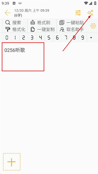 3、在便签编辑页面,输入内容后点击右上角的分享图标,弹出选择操作的弹窗。