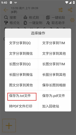 4、在选择操作弹窗中,点击保存为.txt文件选项,完成当前便签内容的保存操作。