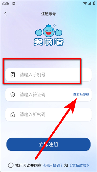 3、在注册账号页面,输入手机号,点击获取验证码。