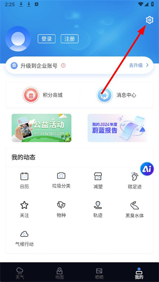 1、打开蔚蓝地图app,点击底部我的选项,进入个人页面。