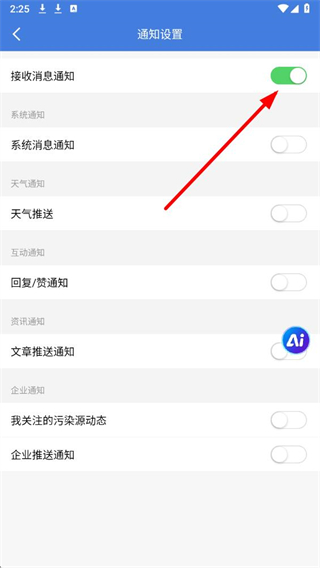 4、在通知设置页面,点击接收消息通知右侧的开关按钮,即可关闭消息通知功能。