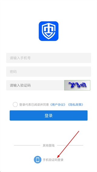 2、在登录页点击验证码登录选项,切换登录方式,进行下一步的操作。