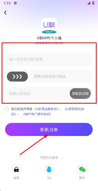3、在登录页面填写手机号和验证码,勾选协议后,点击登录完成账号登录操作。