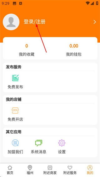 2、在个人中心页面点击登录注册区域,进入账号登录页面。