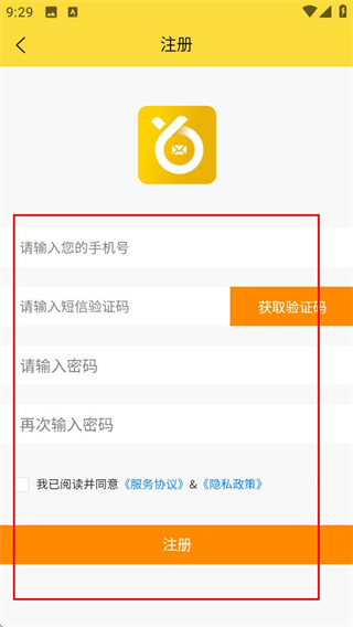 4、在注册页面填写信息并勾选协议后,点击注册完成账号注册。
