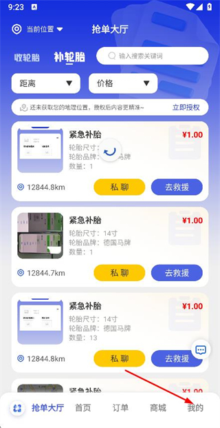 实时查看卖轮胎商家与购买用户位置,精准导航对接。
