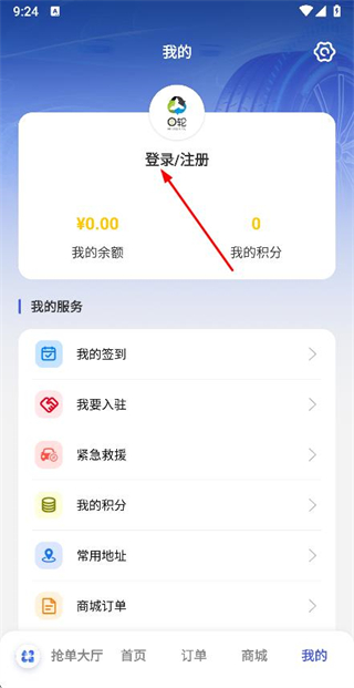 1、在抢单大厅点击底部我的,进入个人中心页面。