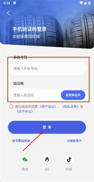 3、在登录页面填写手机号和验证码,勾选协议后,点击登录完成账号登录操作。