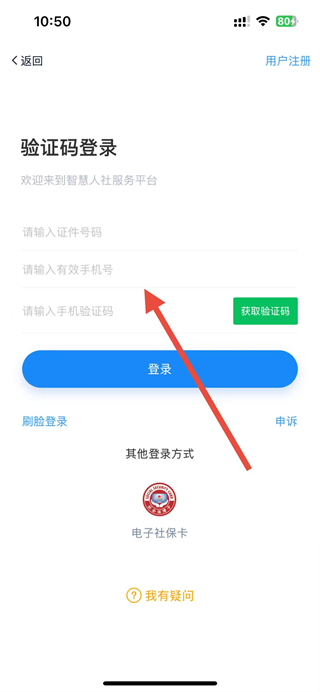 3、在页面,依次填写信息,点击获取验证码并填写收到的短信验证码,随后点击登录完成操作。