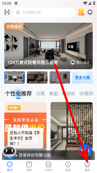 1、在酷家乐设计师,点击底部我的,进入个人中心页面。