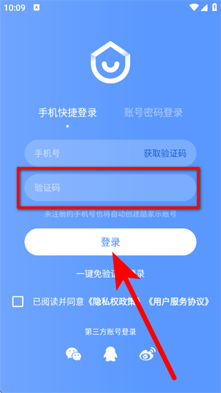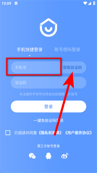 3、在手机快捷登录页面,输入手机号,点击获取验证码。
