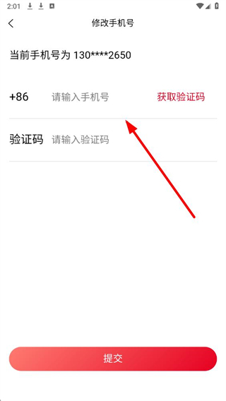 4、在该界面输入新手机号,获取并填写验证码后点击提交,即可完成手机号修改操作。