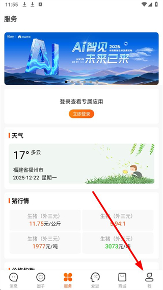1、在智农通APP首页,点击右下角我选项,进入个人中心界面。