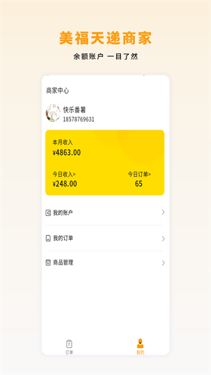 美福天递商家是一款专为外卖商家的平台,在这里可以轻松管理自己的外卖店铺,轻松接单完成外卖制作,所有的退款、用户订单都能在线处理,随时管理店铺中的外卖美食商品,每天的收入可以看得见,让大家可以轻松在线管理自己的订单。