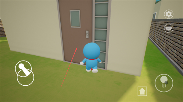 2、控制哆啦A梦靠近建筑房门,尝试互动进入室内区域。
