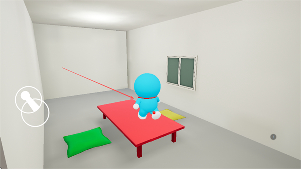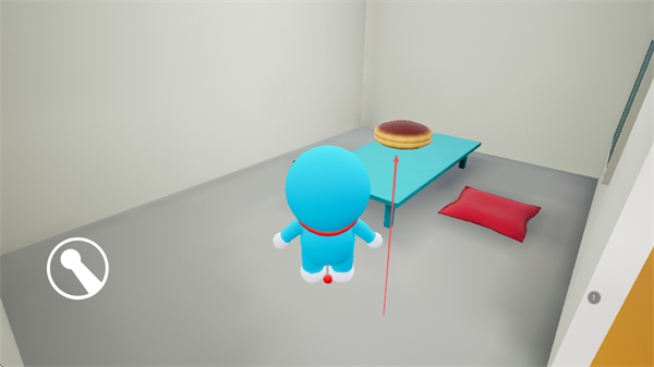 4、控制哆啦A梦跳上室内的红色桌子,继续探索场景,完成互动操作。