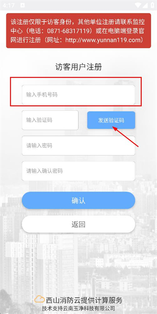 2、在注册账号页面填写手机号码后,点击发送验证码。