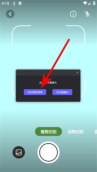 2、在主界面选择植物识别功能模块,进入识别准备页面。