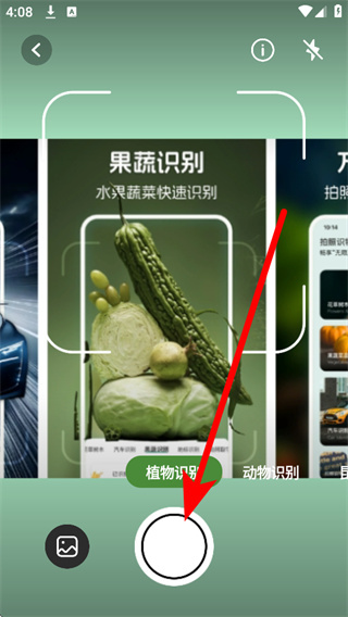 4、将目标植物对准拍摄框,点击底部的拍摄按钮,识别并展示植物信息。