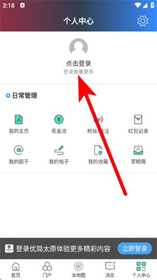 1、打开优简太原,点击底部个人中心,进入个人中心页面。