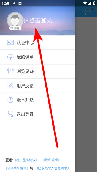2、在个人功能菜单中,点击请点击登录,进入登录页面。